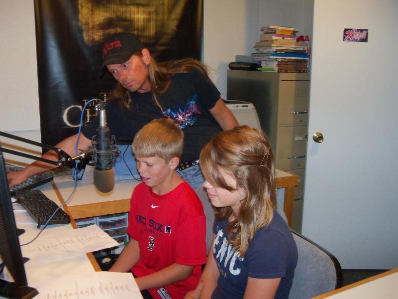 Above are Marielle and Landon recording their winning ad with the assistance of General Manager Mark Lucke